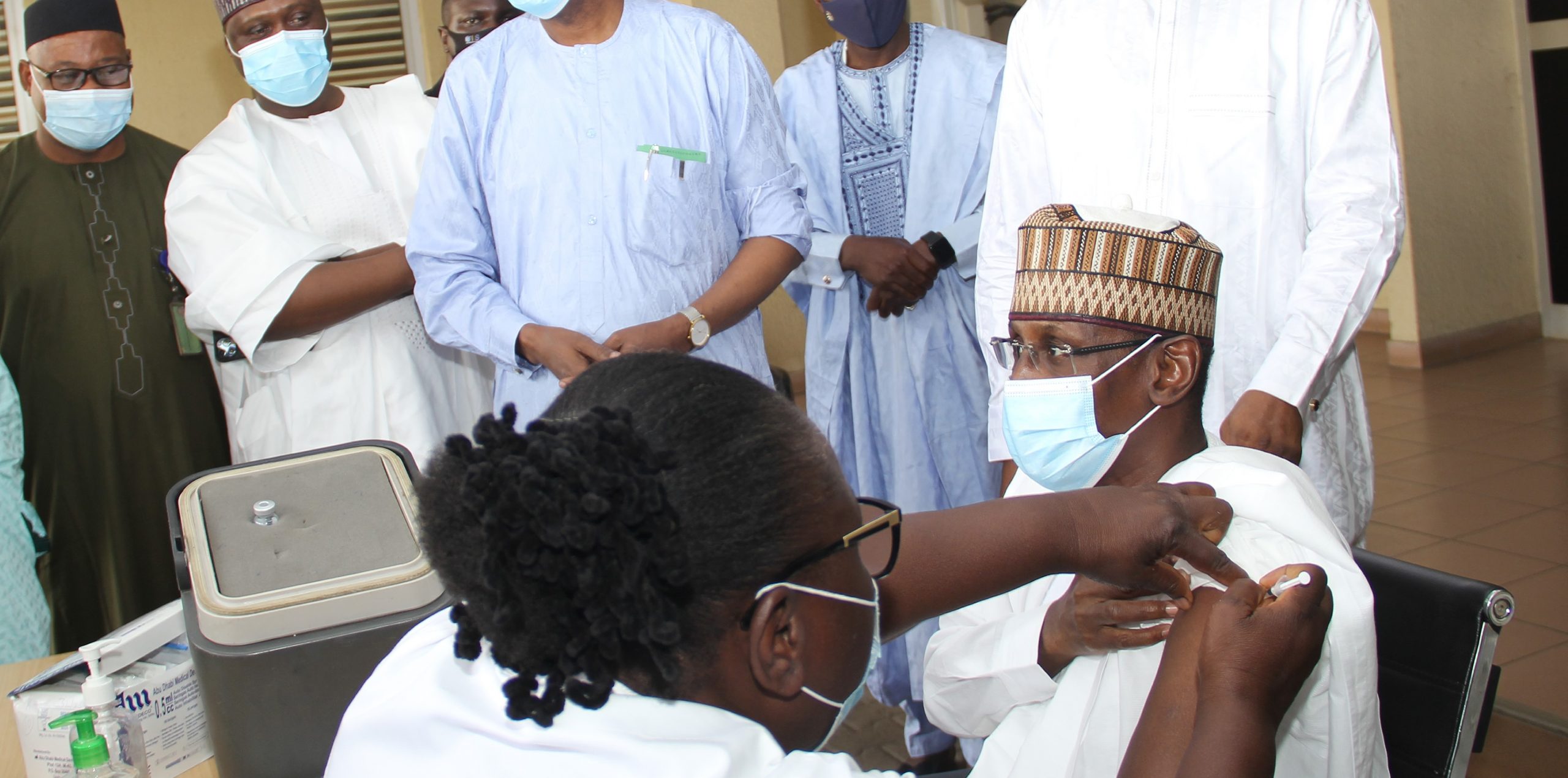 FCT Minister, Malam Muhammad Musa Bello, taking the COVID-19 booster shot on Friday February 3rd 2022.