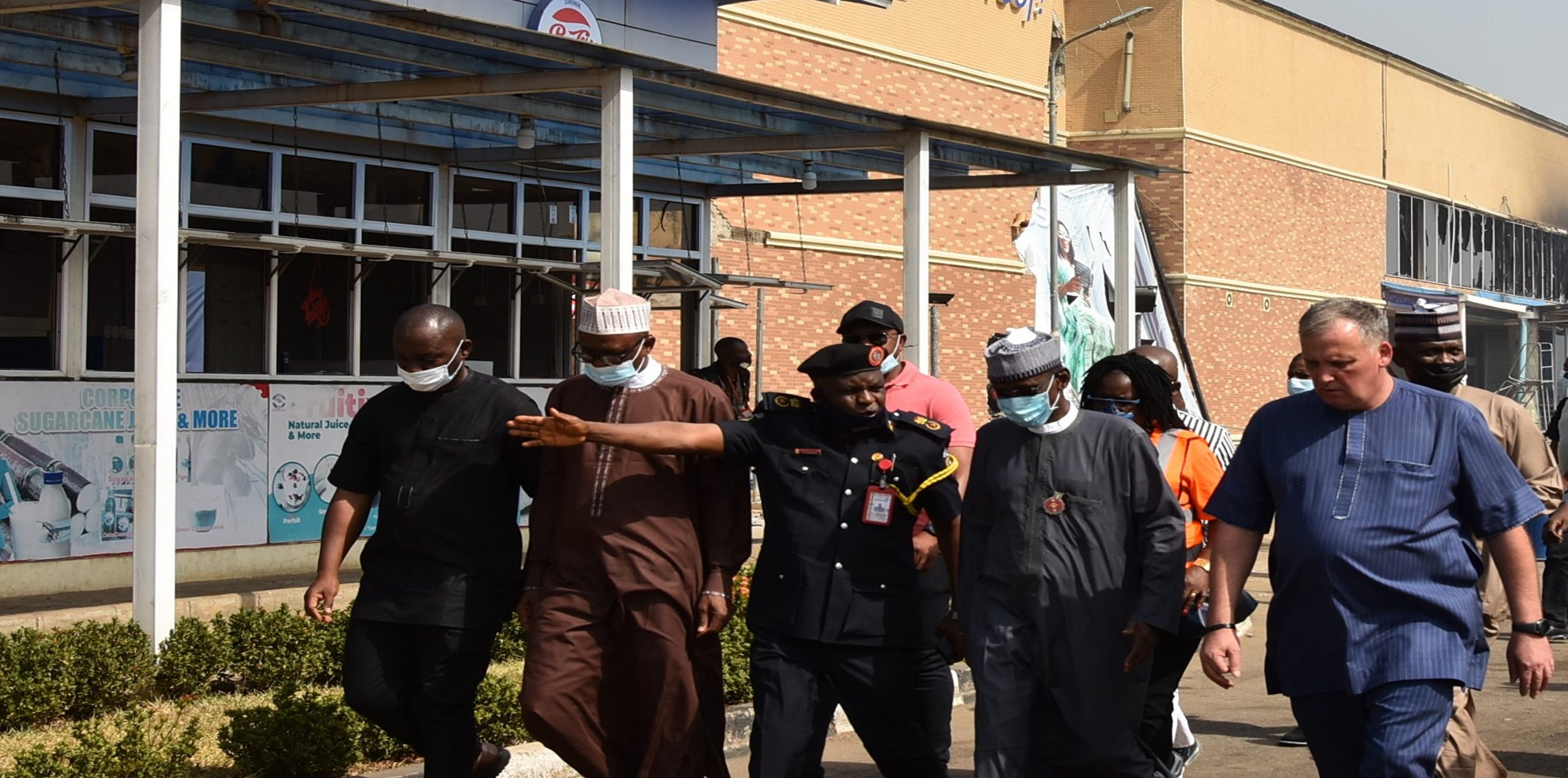 1. The Honourable Minister of the FCT, Malam Muhammad Musa Bello on Tuesday, 28th December 2021 paid an inspection visit to the Next Cash and Carry Supermarket, Abuja which was engulfed in flames on Boxing Day, 26th of December, 2021.