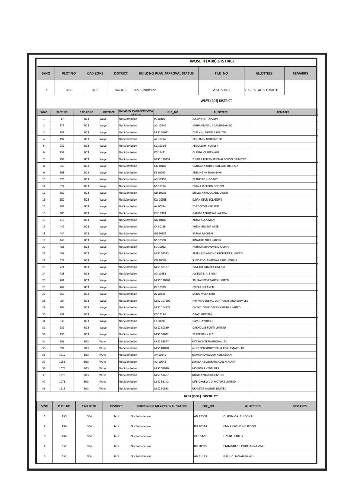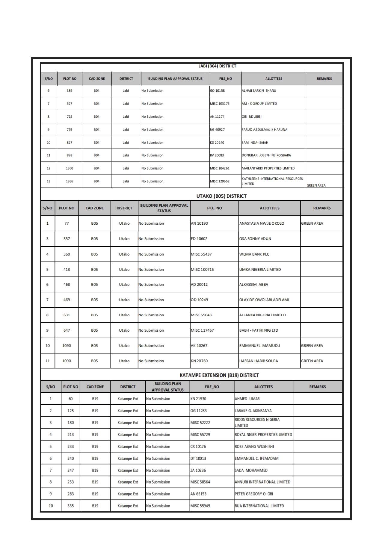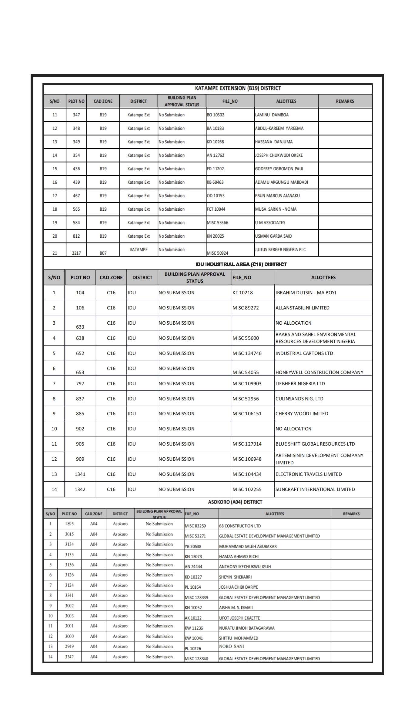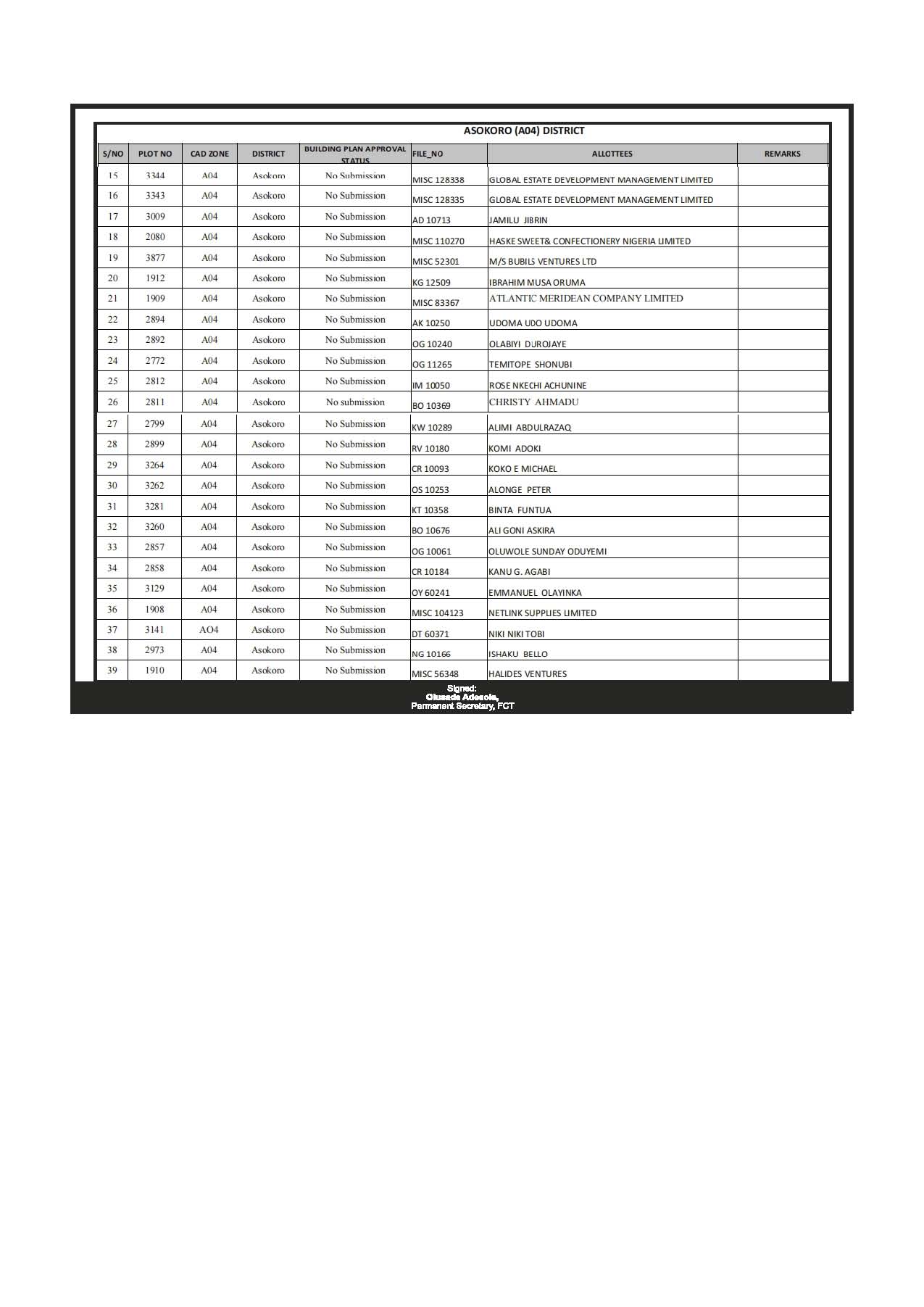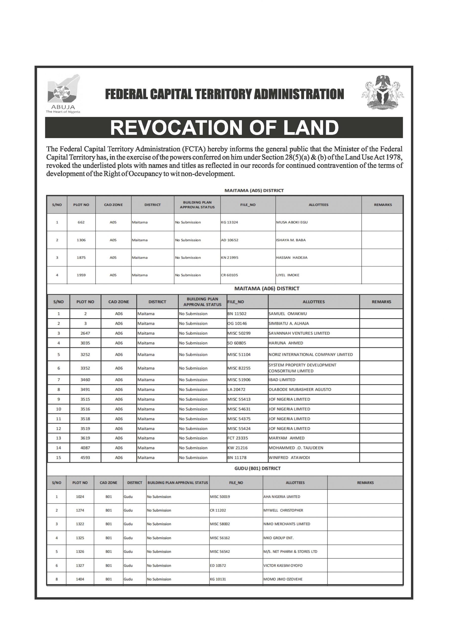 revoked the underlisted plots with names and titles as reflected in our records for continued contravention of the terms of